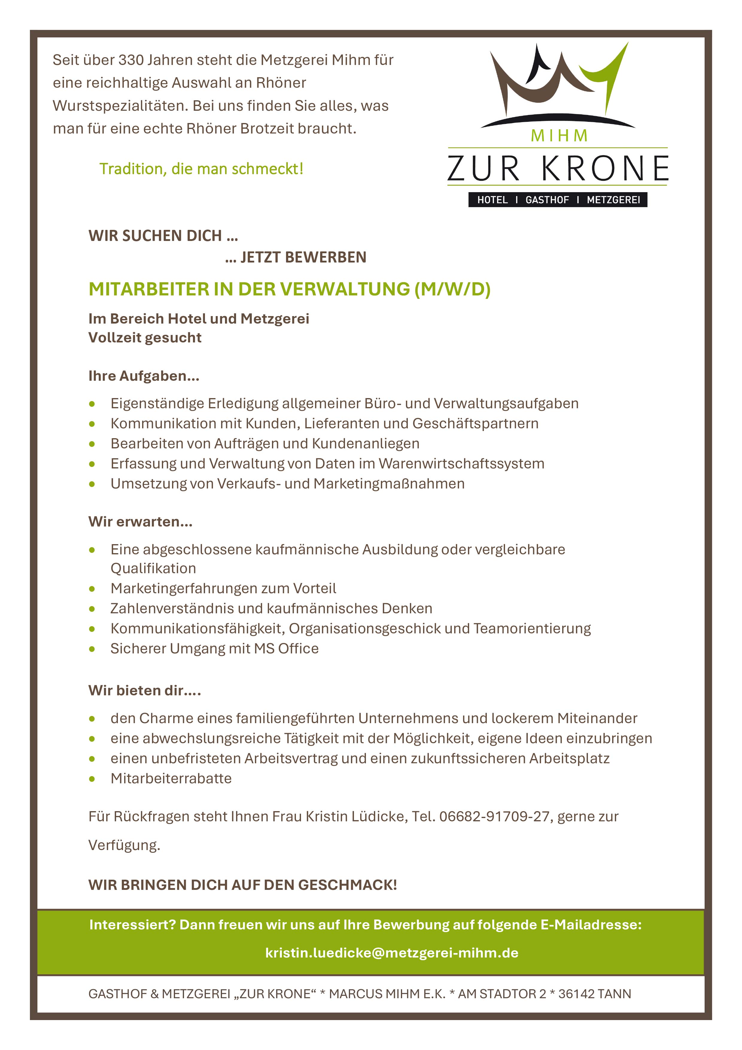 Sende deine Bewerbung direkt an kristin.luedicke@metzgerei-mihm.de!